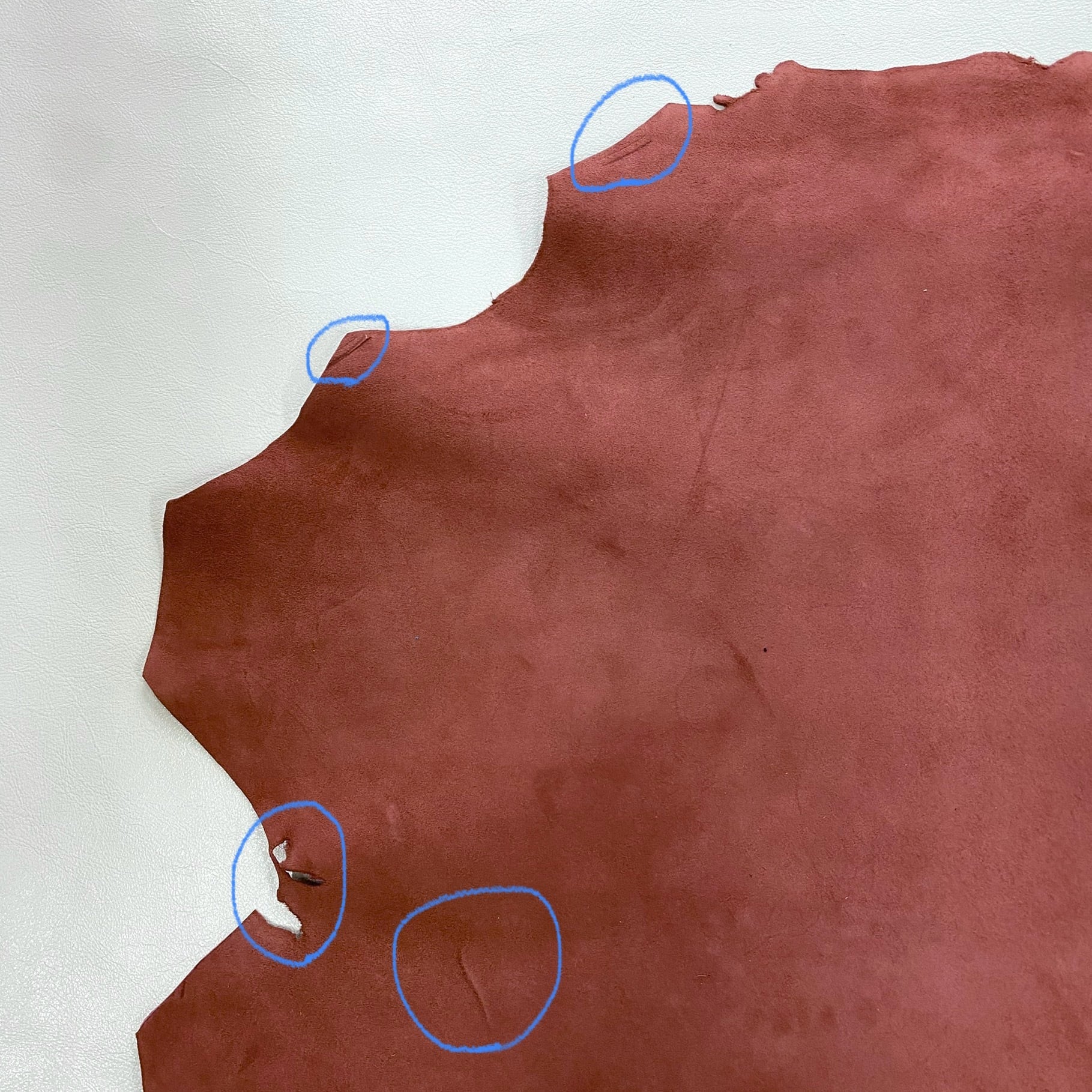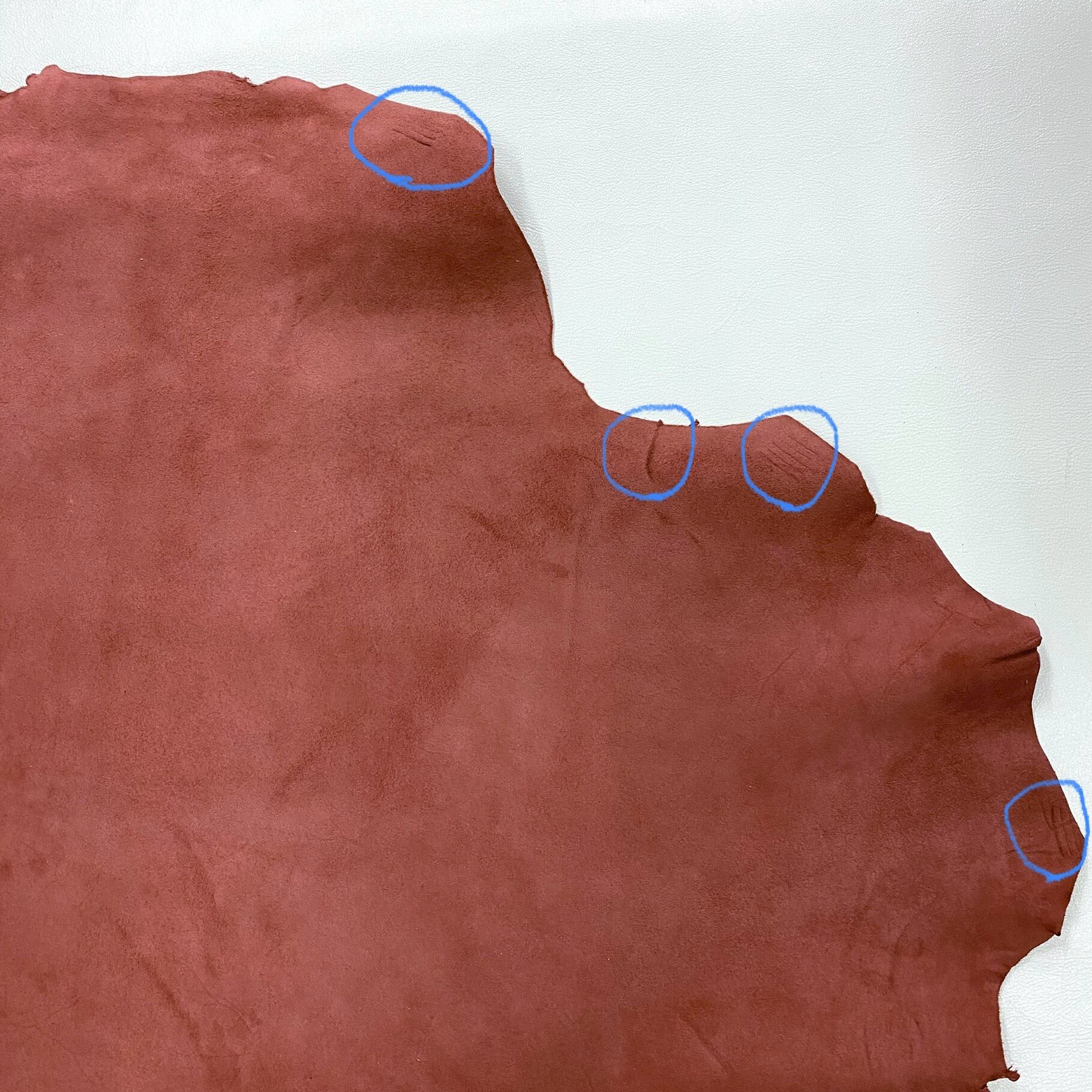 当店の商品は全て天然皮革になりますため、動物特有のシワ、血スジ、虫食い痕、動物同士のケンカ時についたケガ痕(バラ傷)等がある場合がございます。また染色による個体差がある関係で同じ色でも色ムラや色味が異なる場合があります。これらは全て天然皮革ならではの特徴になりますので、その点をご了承いただき作品作りに活かしていただければと思います。