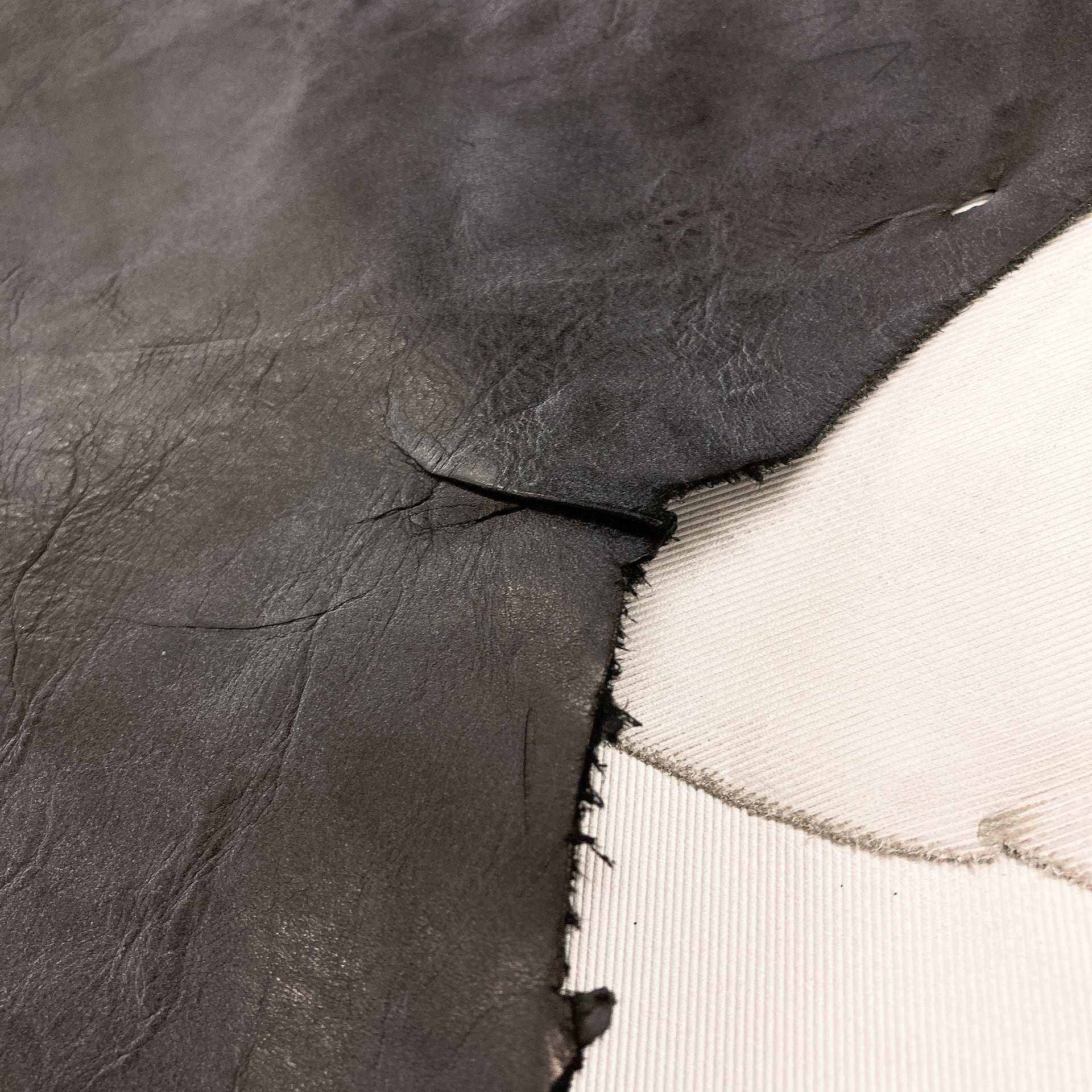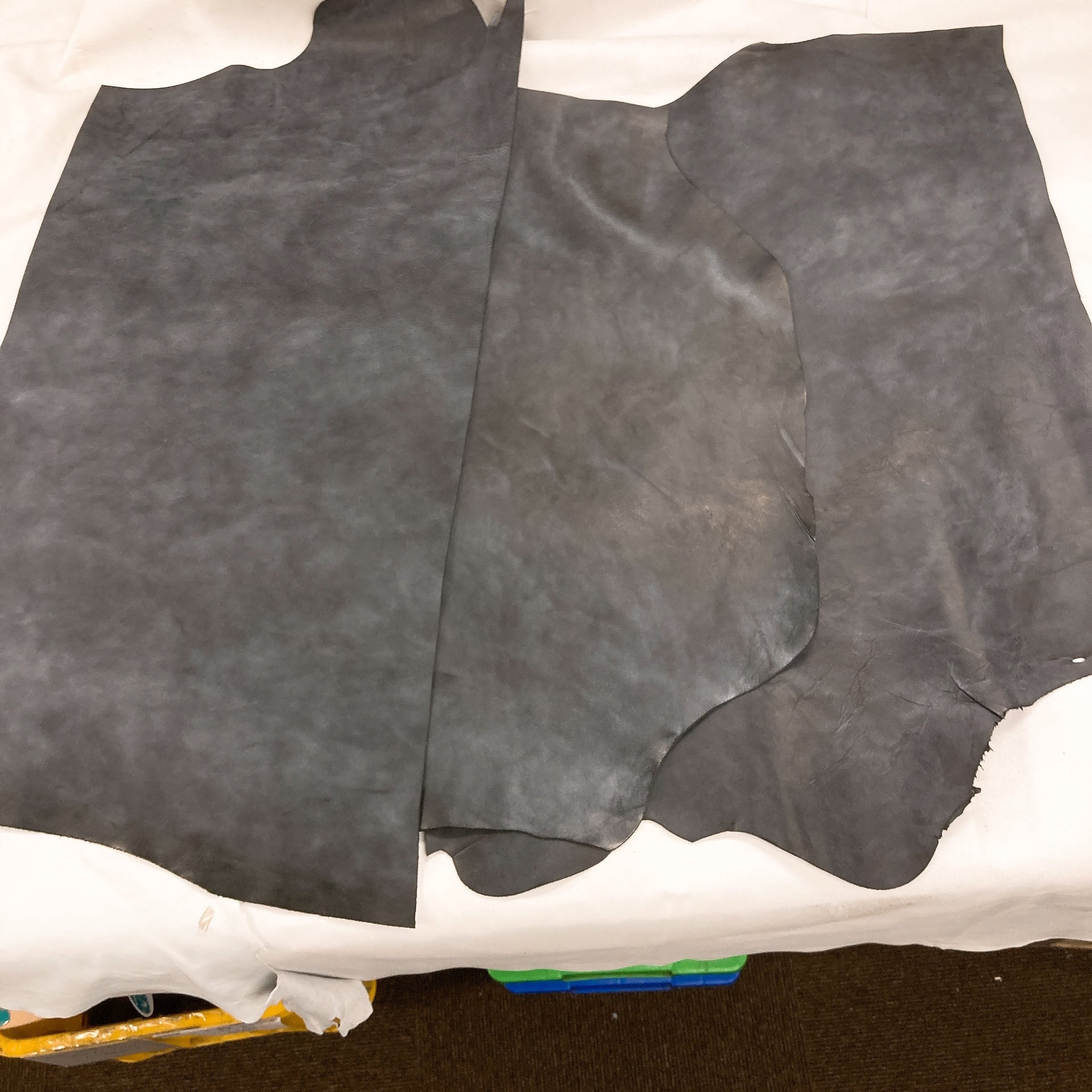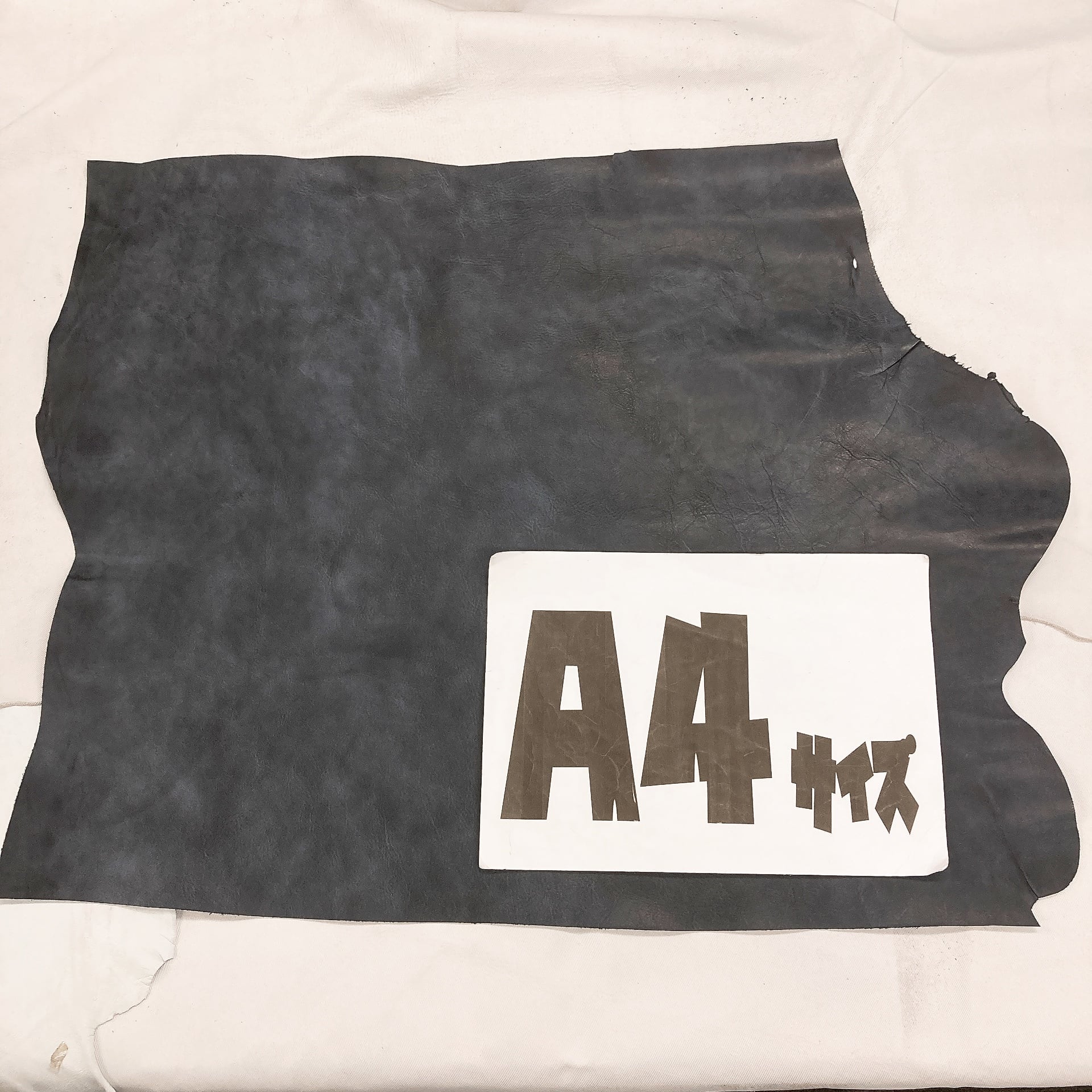 ・半裁など大ぶりな革で3辺のサイズが160cm以上になる場合は、ベリー部(腹部)を折りたたむか、多少カットし梱包状態を小さくしてお届けする場合があります。