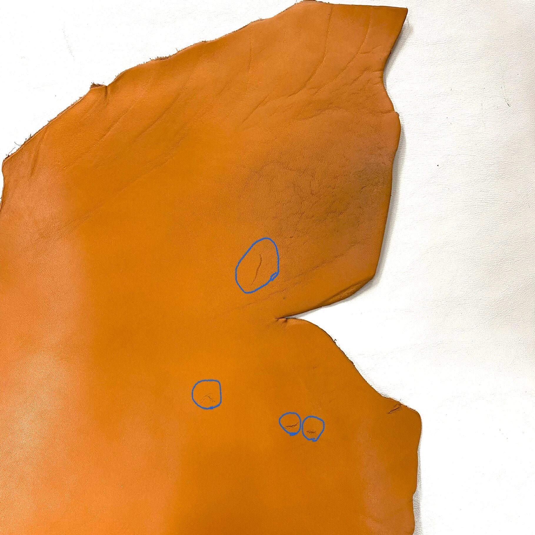 当店の商品は全て天然皮革になりますため、動物特有のシワ、血スジ、虫食い痕、動物同士のケンカ時についたケガ痕(バラ傷)等がある場合がございます。また染色による個体差がある関係で同じ色でも色ムラや色味が異なる場合があります。これらは全て天然皮革ならではの特徴になりますので、その点をご了承いただき作品作りに活かしていただければと思います。