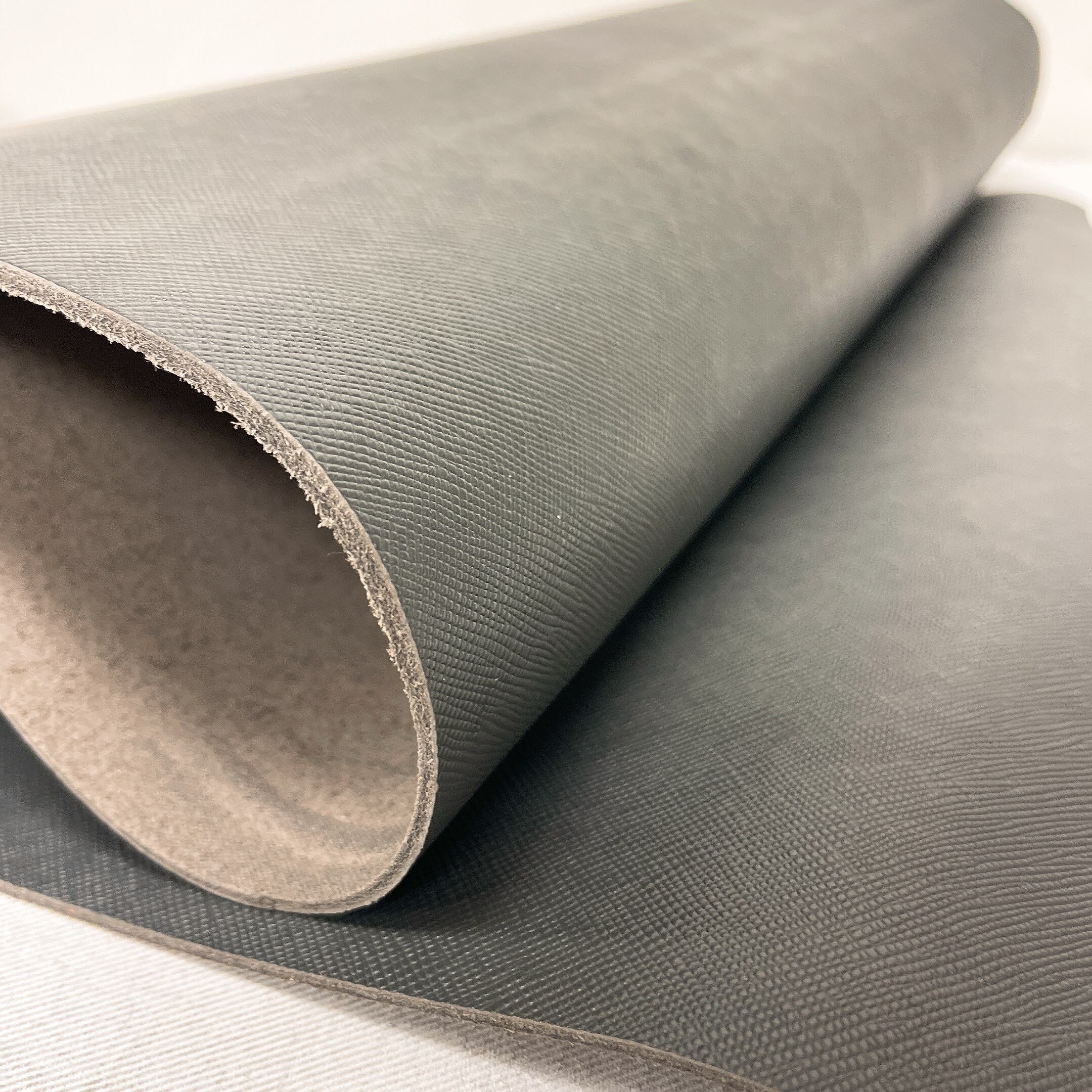 角シボの型押しが施されたクロム鞣しの牛革です。