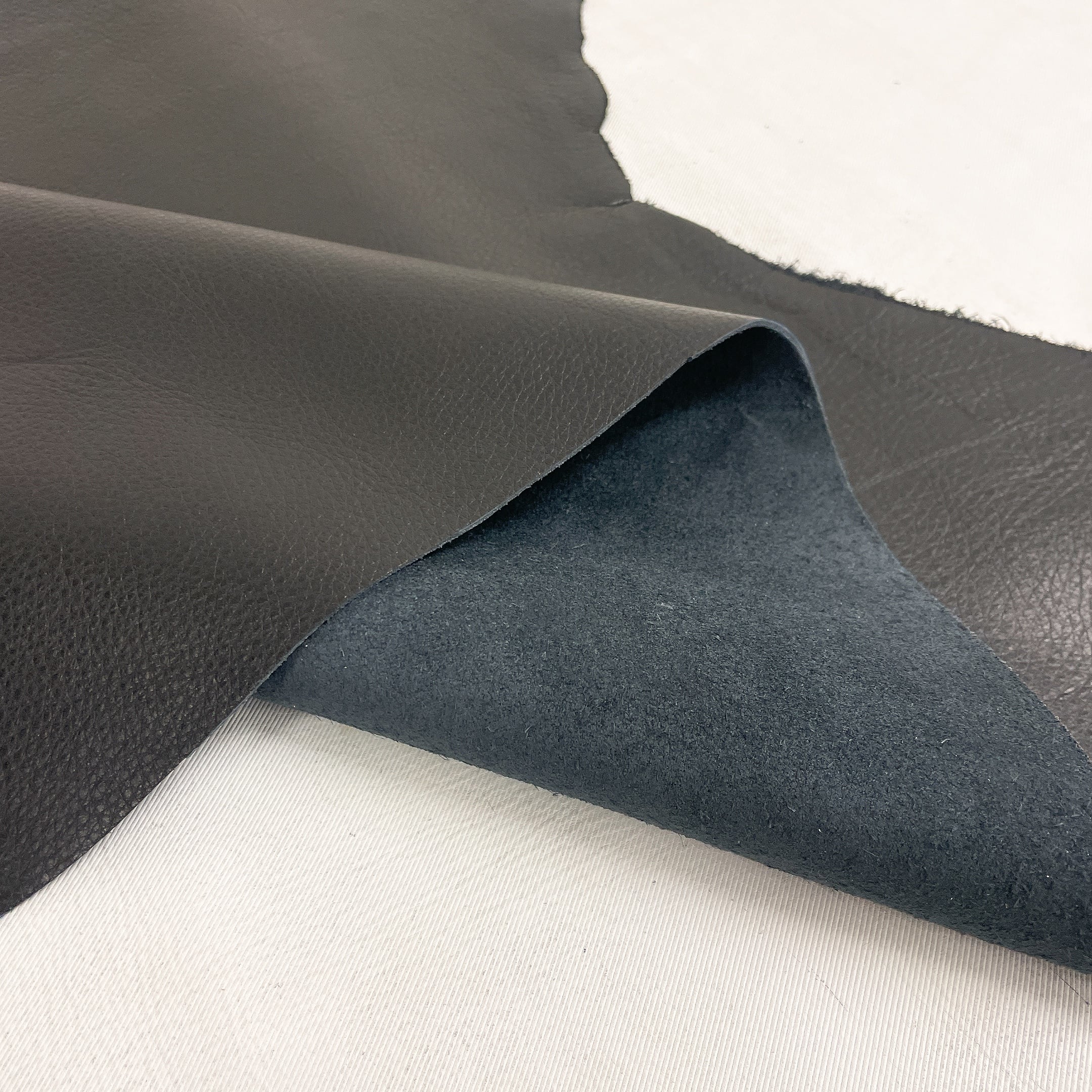 シュリンク加工が施されたクロム鞣しの牛革です。