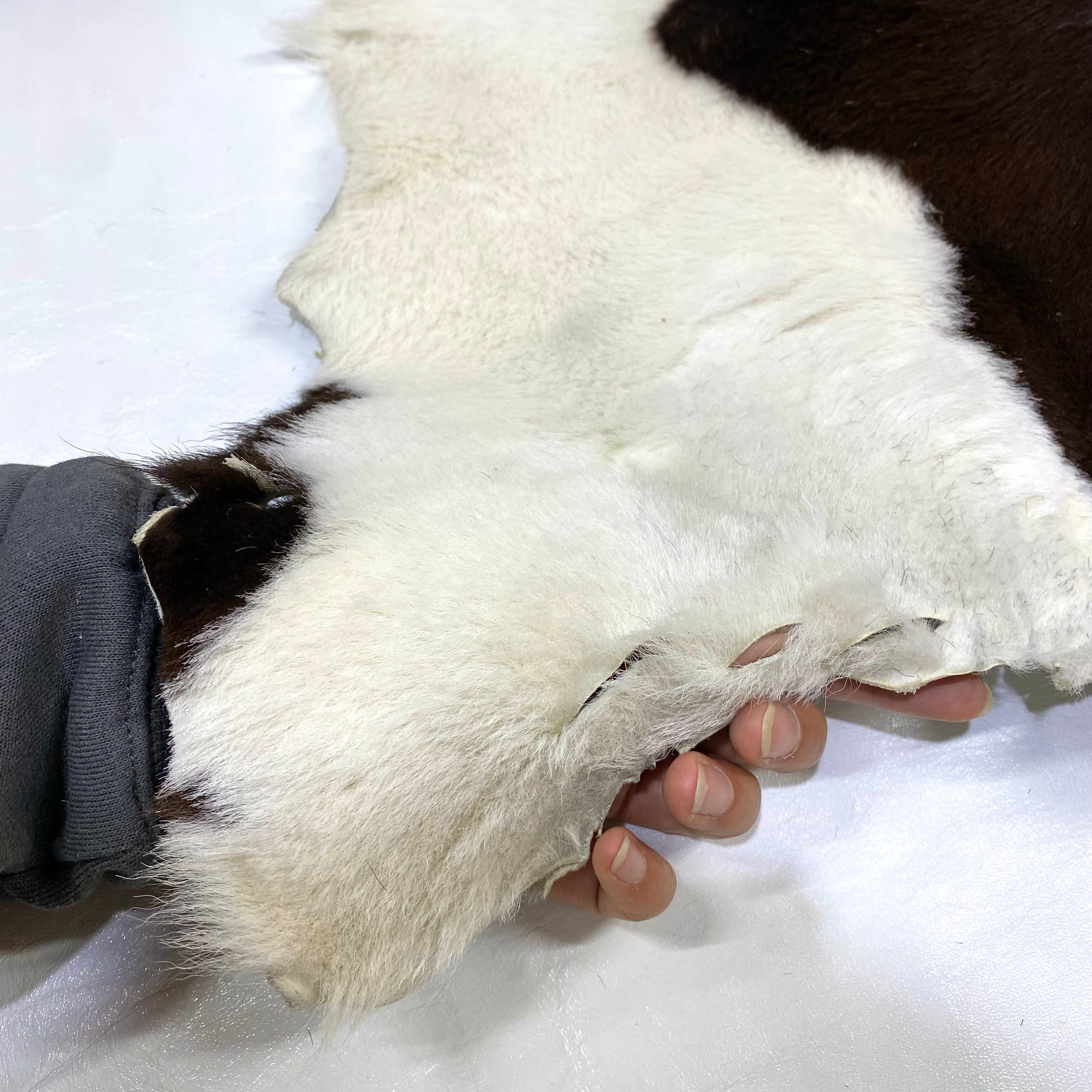 しっとりとした毛並みと柔らかい手触りが特長で、天然の模様は一枚ごとに異なります。