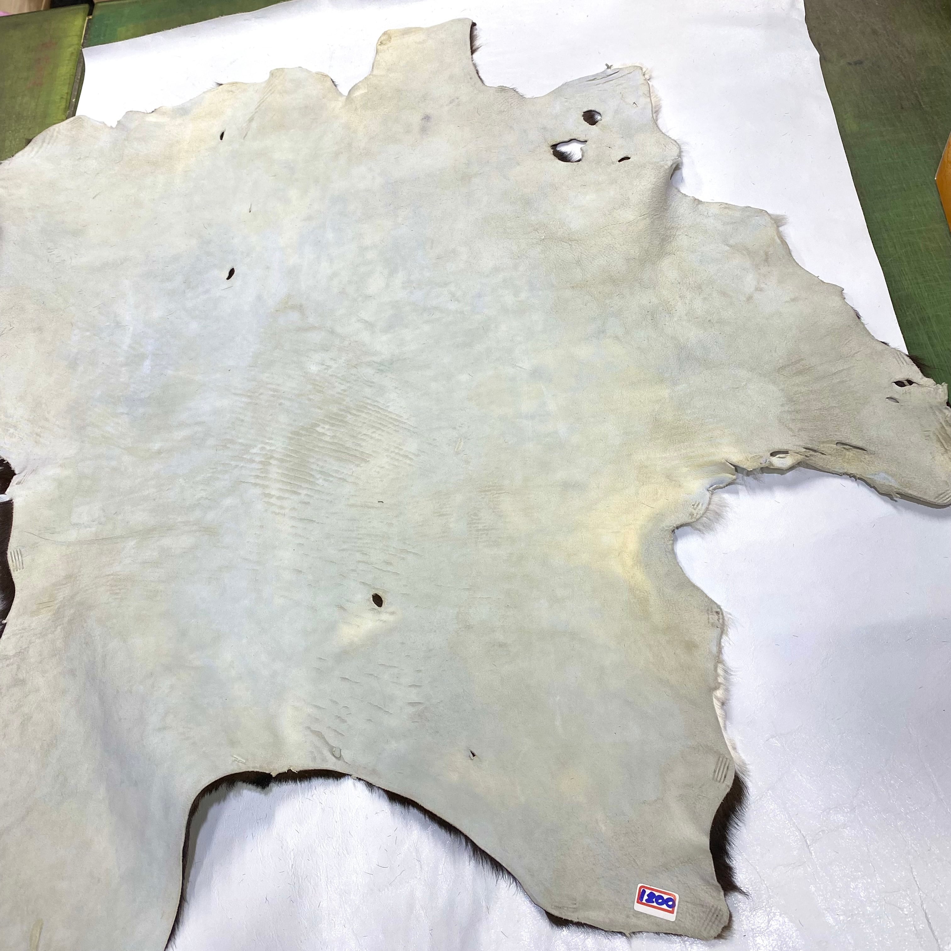 当店の商品は全て天然皮革になりますため、動物特有のシワ、血スジ、虫食い痕、動物同士のケンカ時についたケガ痕(バラ傷)等がある場合がございます。また染色による個体差がある関係で同じ色でも色ムラや色味が異なる場合があります。これらは全て天然皮革ならではの特徴になりますので、その点をご了承いただき作品作りに活かしていただければと思います。