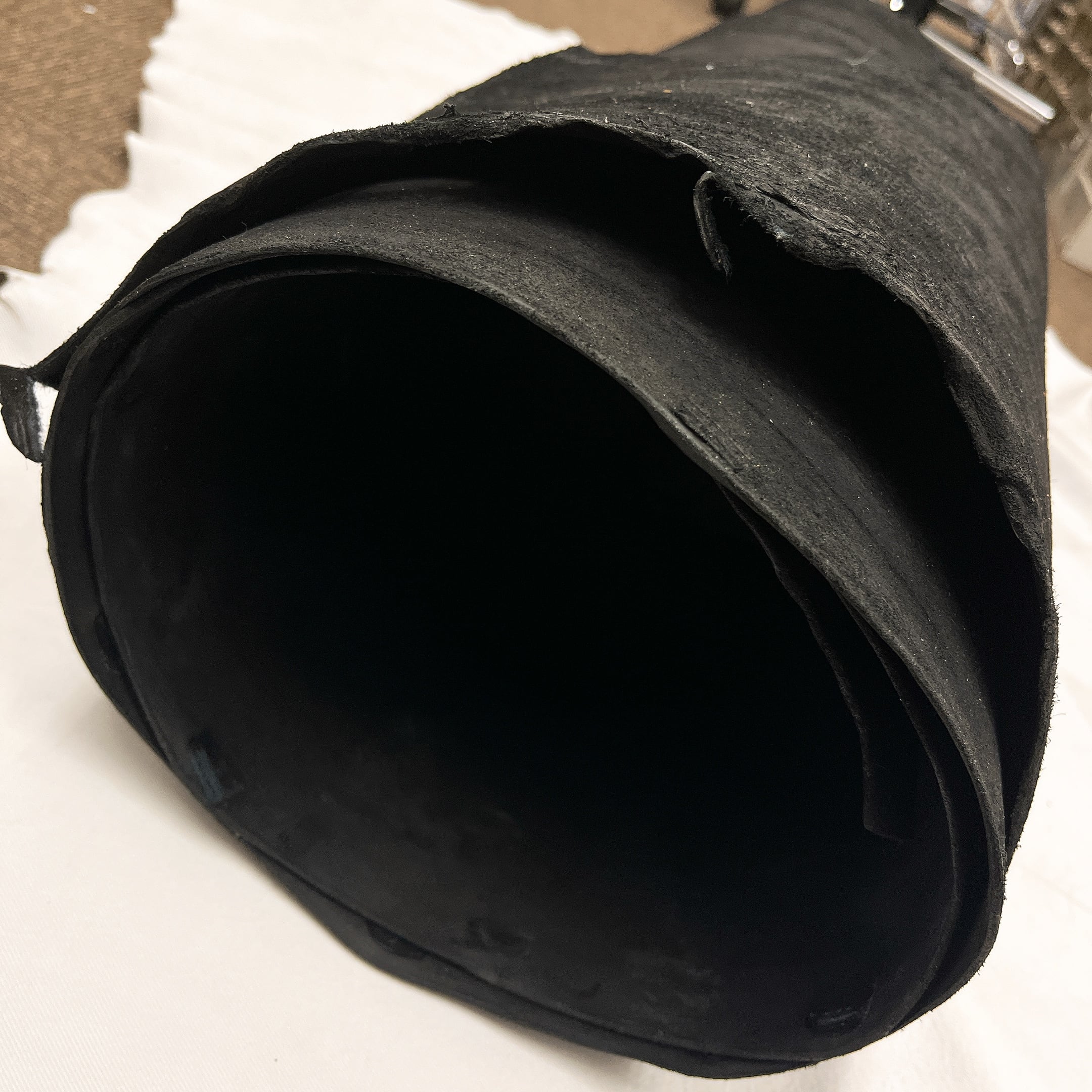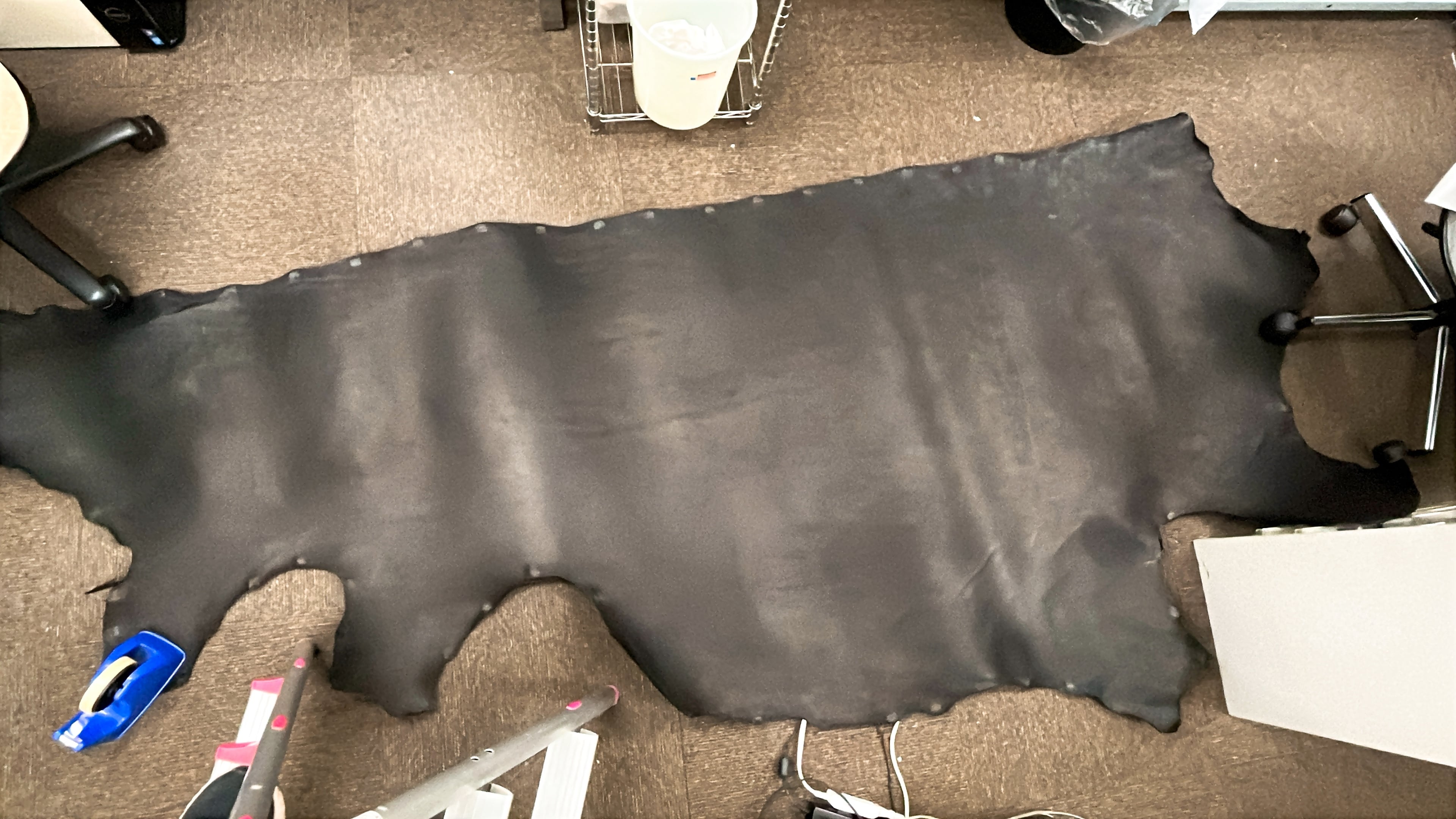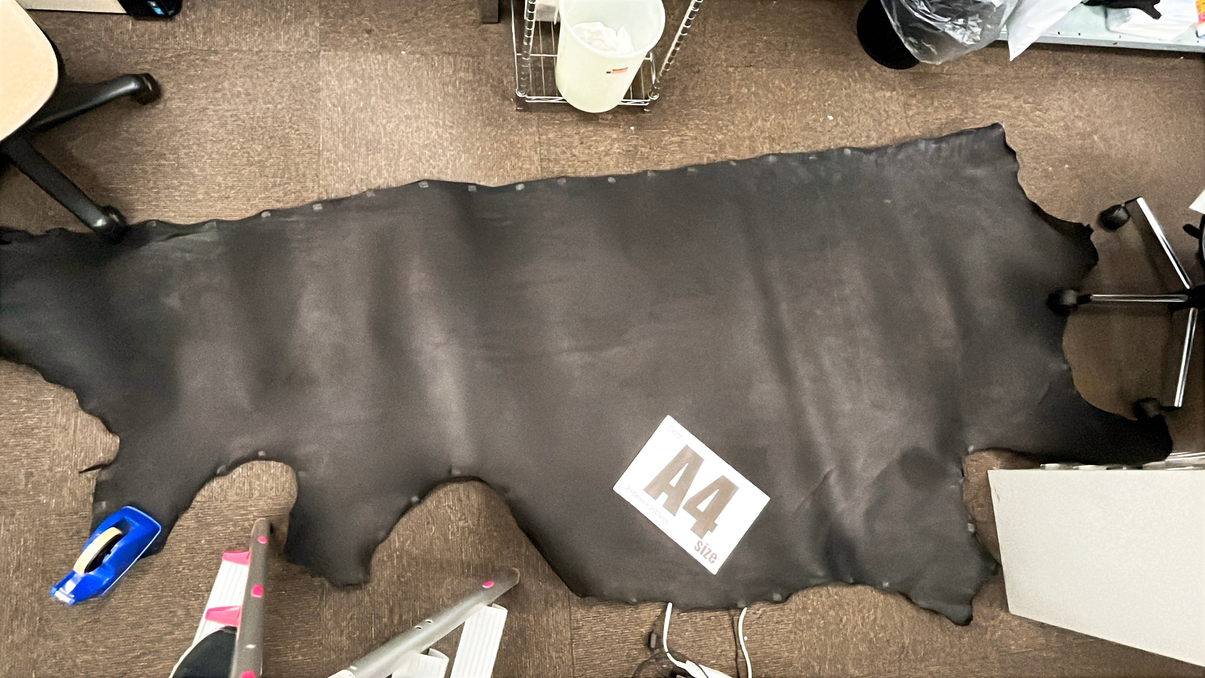 ・半裁など大ぶりな革で3辺のサイズが160cm以上になる場合は、ベリー部(腹部)を折りたたむか、多少カットし梱包状態を小さくしてお届けする場合があります。