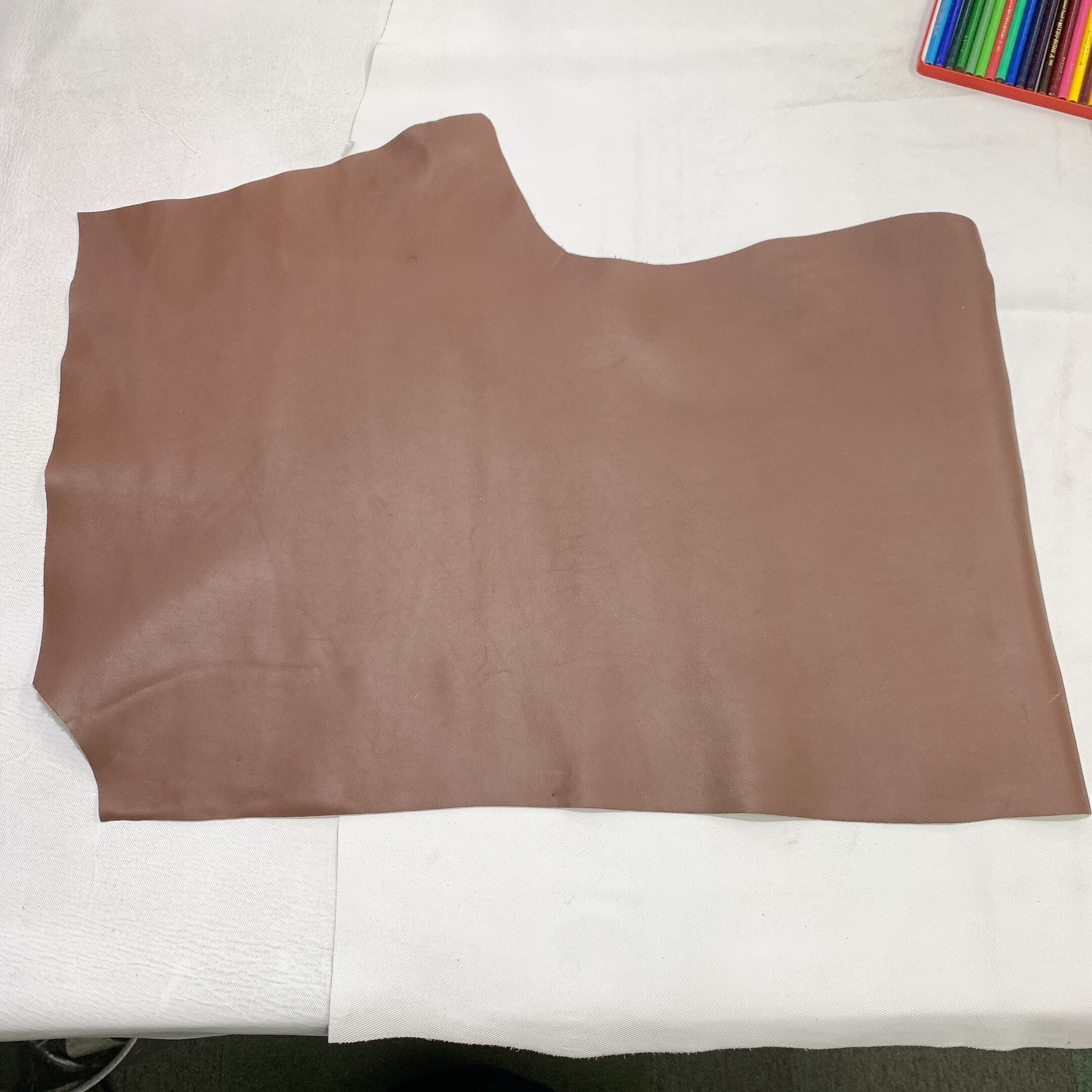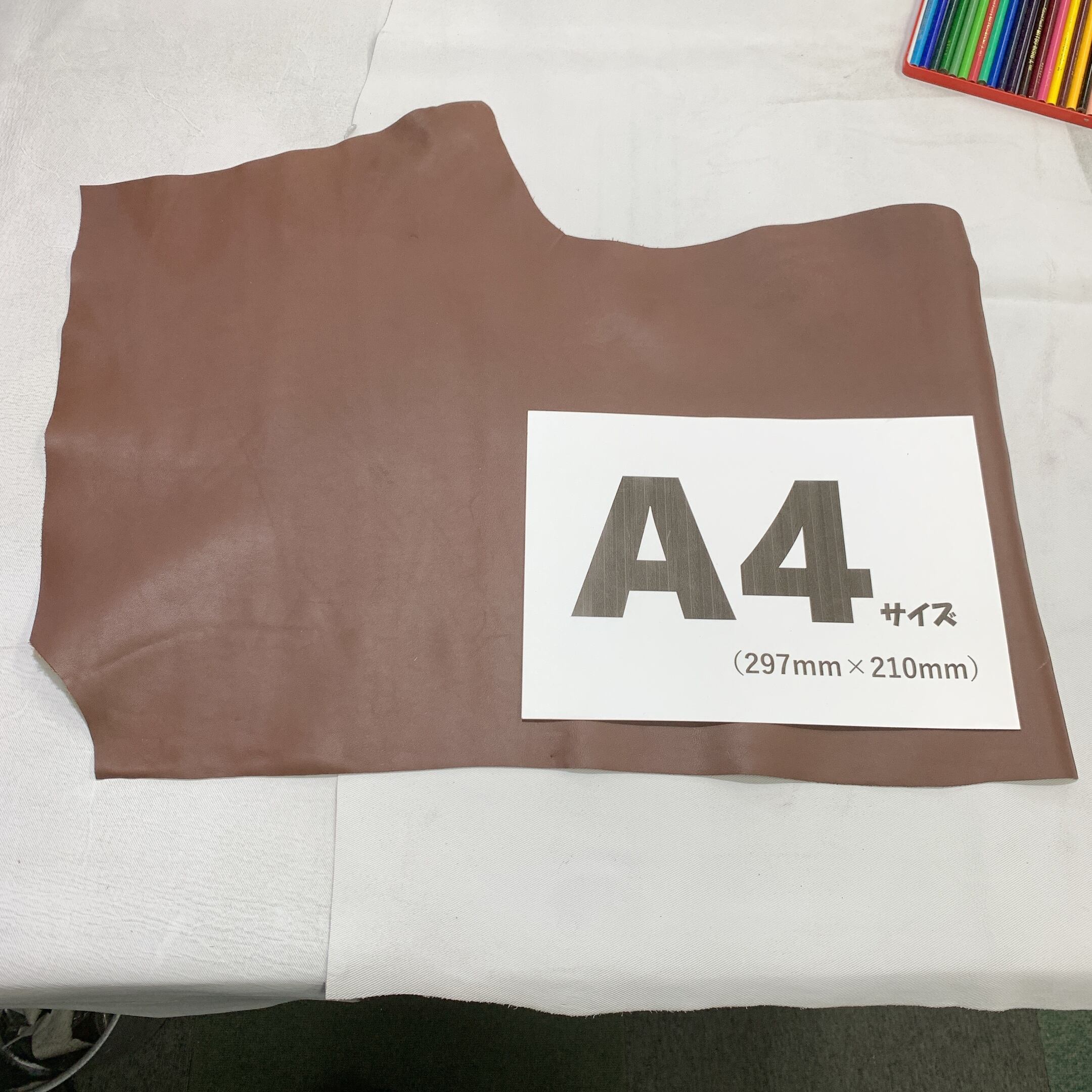 当店の商品は全て天然皮革になりますため、動物特有のシワ、血スジ、虫食い痕、動物同士のケンカ時についたケガ痕(バラ傷)等がある場合がございます。また染色による個体差がある関係で同じ色でも色ムラや色味が異なる場合があります。これらは全て天然皮革ならではの特徴になりますので、その点をご了承いただき作品作りに活かしていただければと思います。