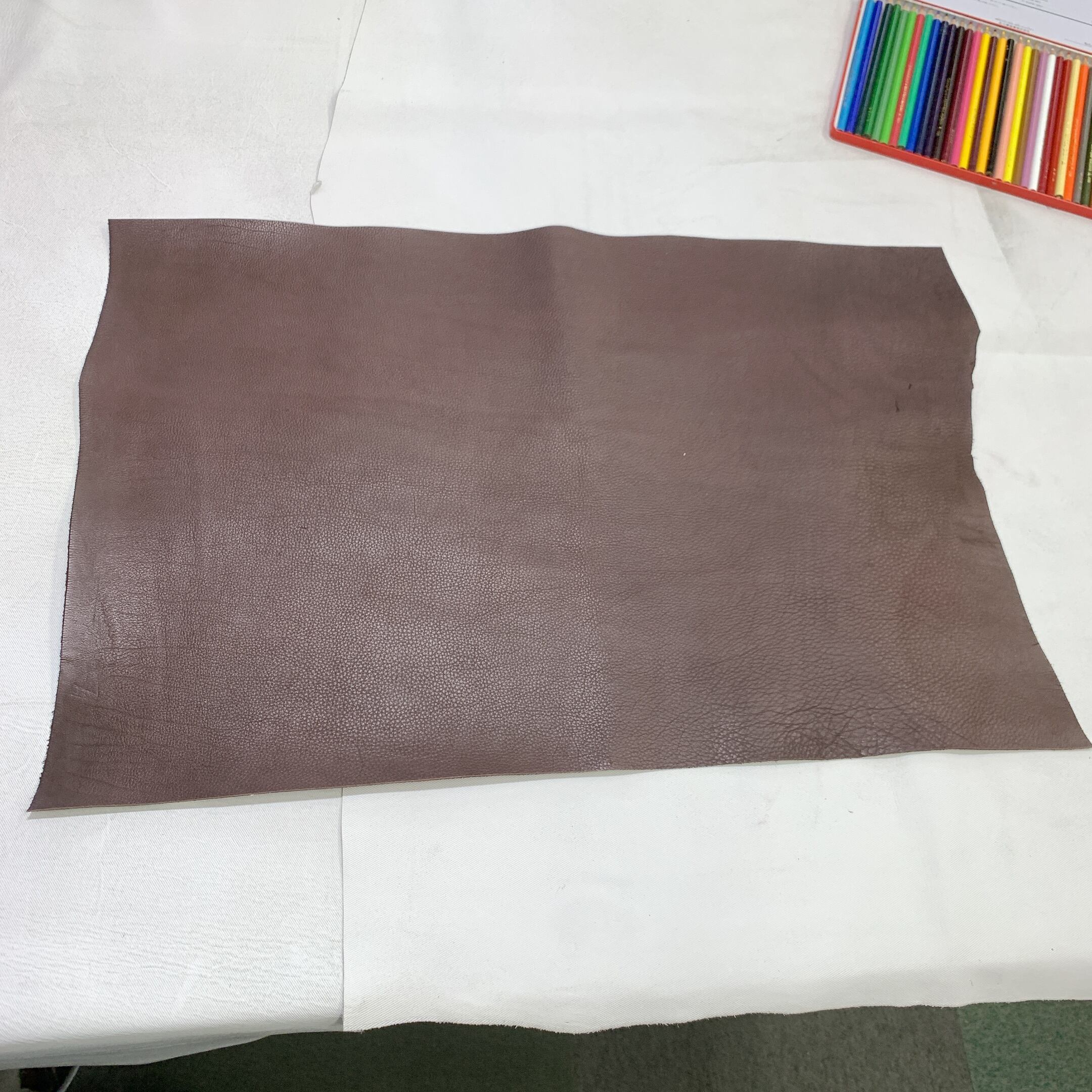 当店の商品は全て天然皮革になりますため、動物特有のシワ、血スジ、虫食い痕、動物同士のケンカ時についたケガ痕(バラ傷)等がある場合がございます。また染色による個体差がある関係で同じ色でも色ムラや色味が異なる場合があります。これらは全て天然皮革ならではの特徴になりますので、その点をご了承いただき作品作りに活かしていただければと思います。