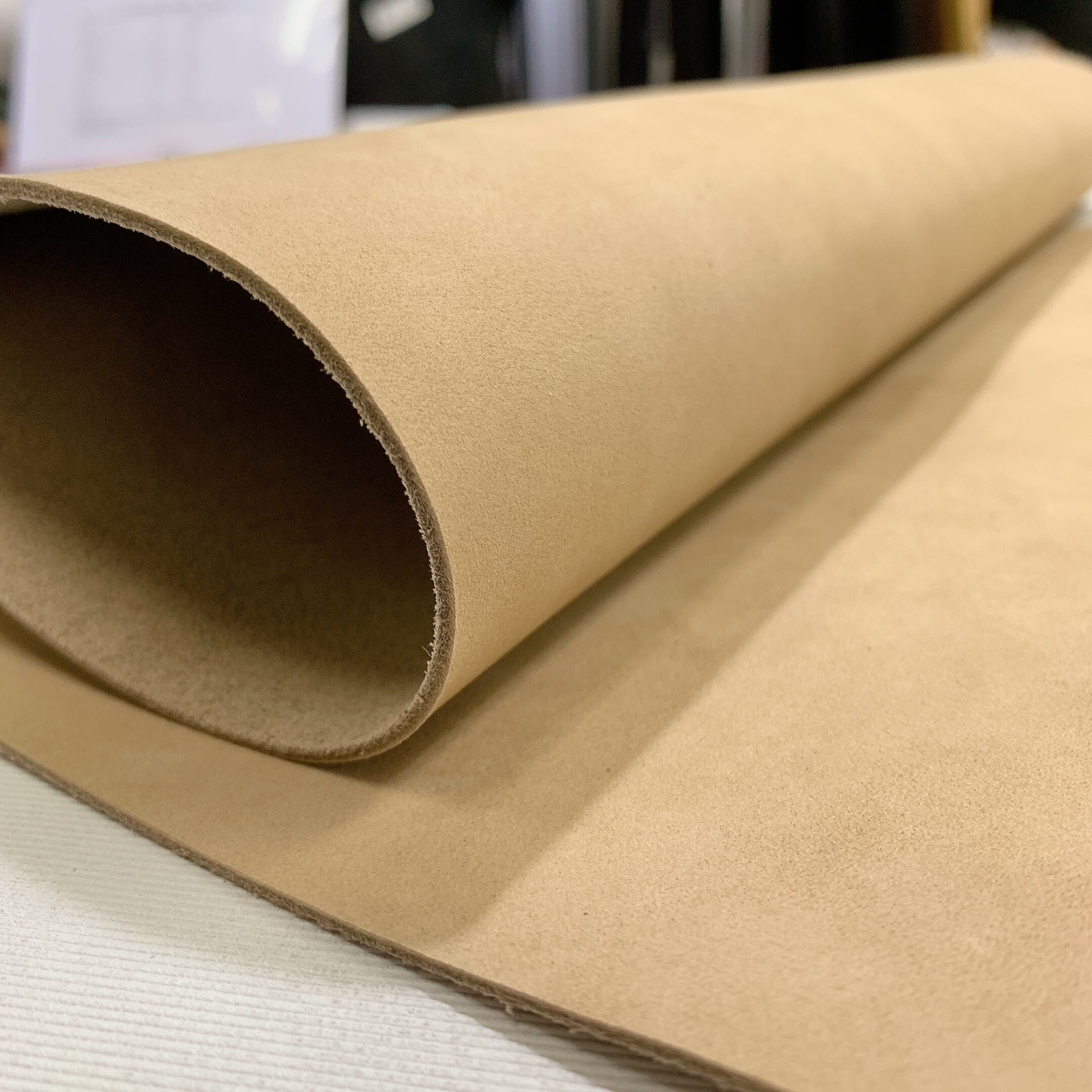 ヌバック加工の施されたクロム鞣しの牛革です。