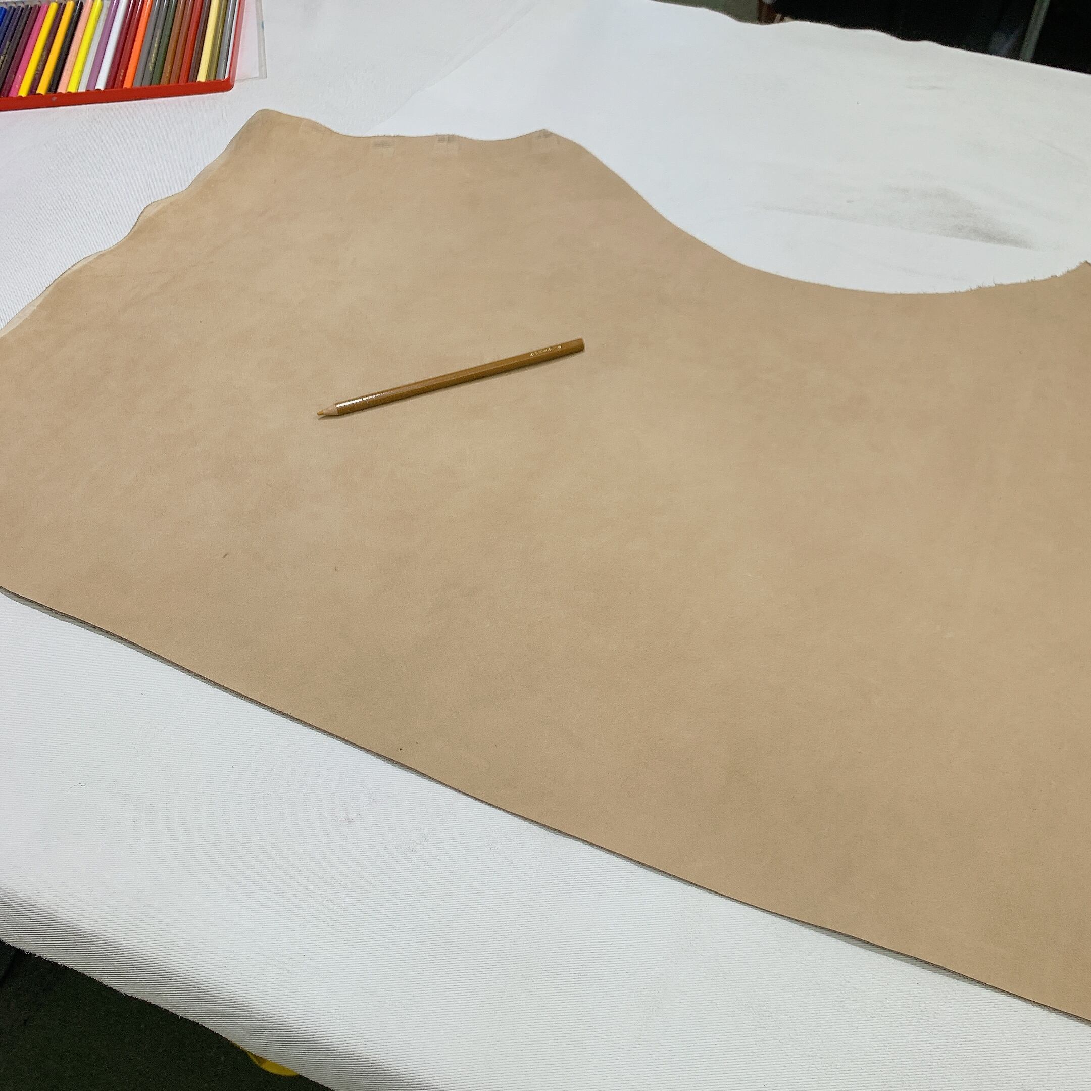 当店の商品は全て天然皮革になりますため、動物特有のシワ、血スジ、虫食い痕、動物同士のケンカ時についたケガ痕(バラ傷)等がある場合がございます。また染色による個体差がある関係で同じ色でも色ムラや色味が異なる場合があります。これらは全て天然皮革ならではの特徴になりますので、その点をご了承いただき作品作りに活かしていただければと思います。