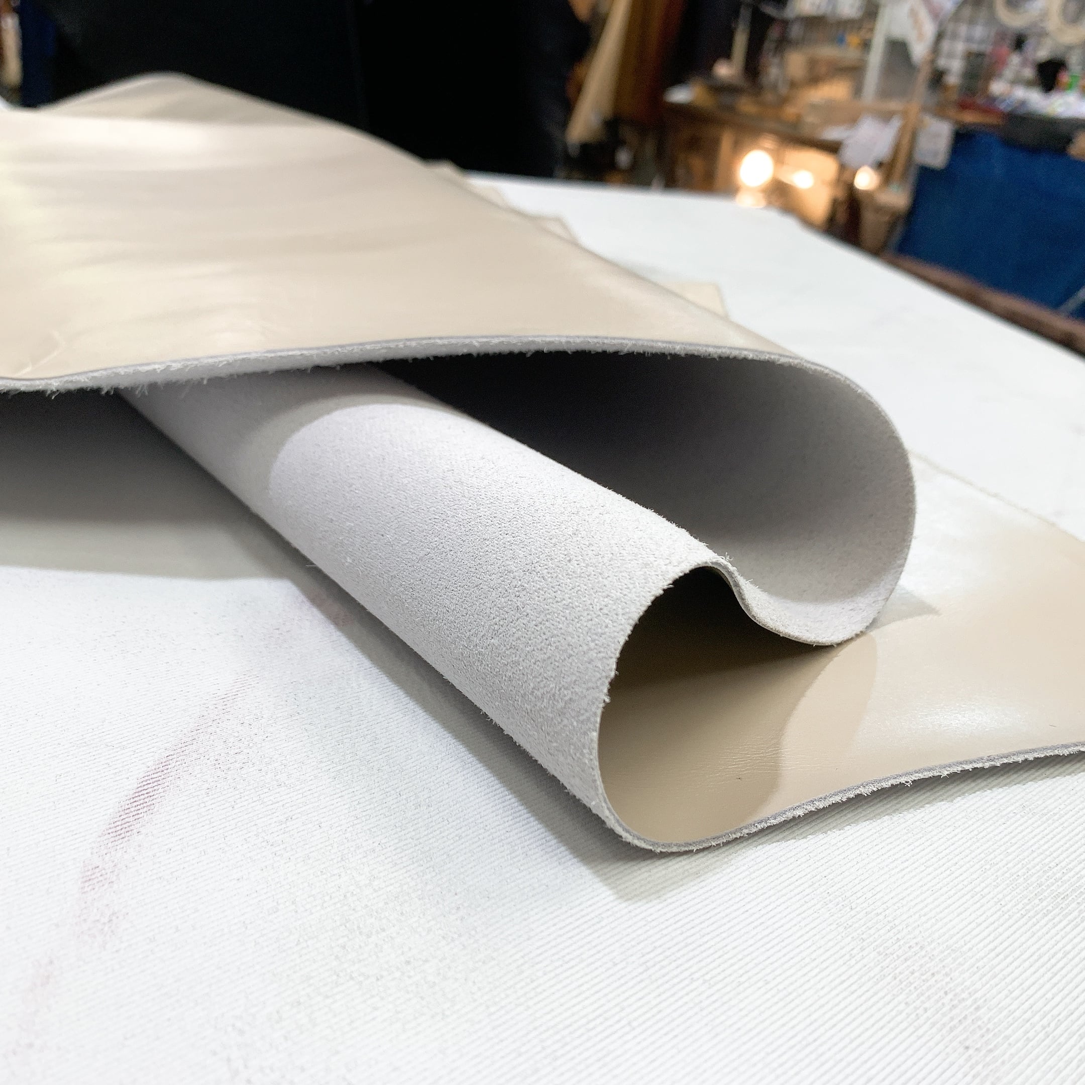 当店の商品は全て天然皮革になりますため、動物特有のシワ、血スジ、虫食い痕、動物同士のケンカ時についたケガ痕(バラ傷)等がある場合がございます。また染色による個体差がある関係で同じ色でも色ムラや色味が異なる場合があります。これらは全て天然皮革ならではの特徴になりますので、その点をご了承いただき作品作りに活かしていただければと思います。