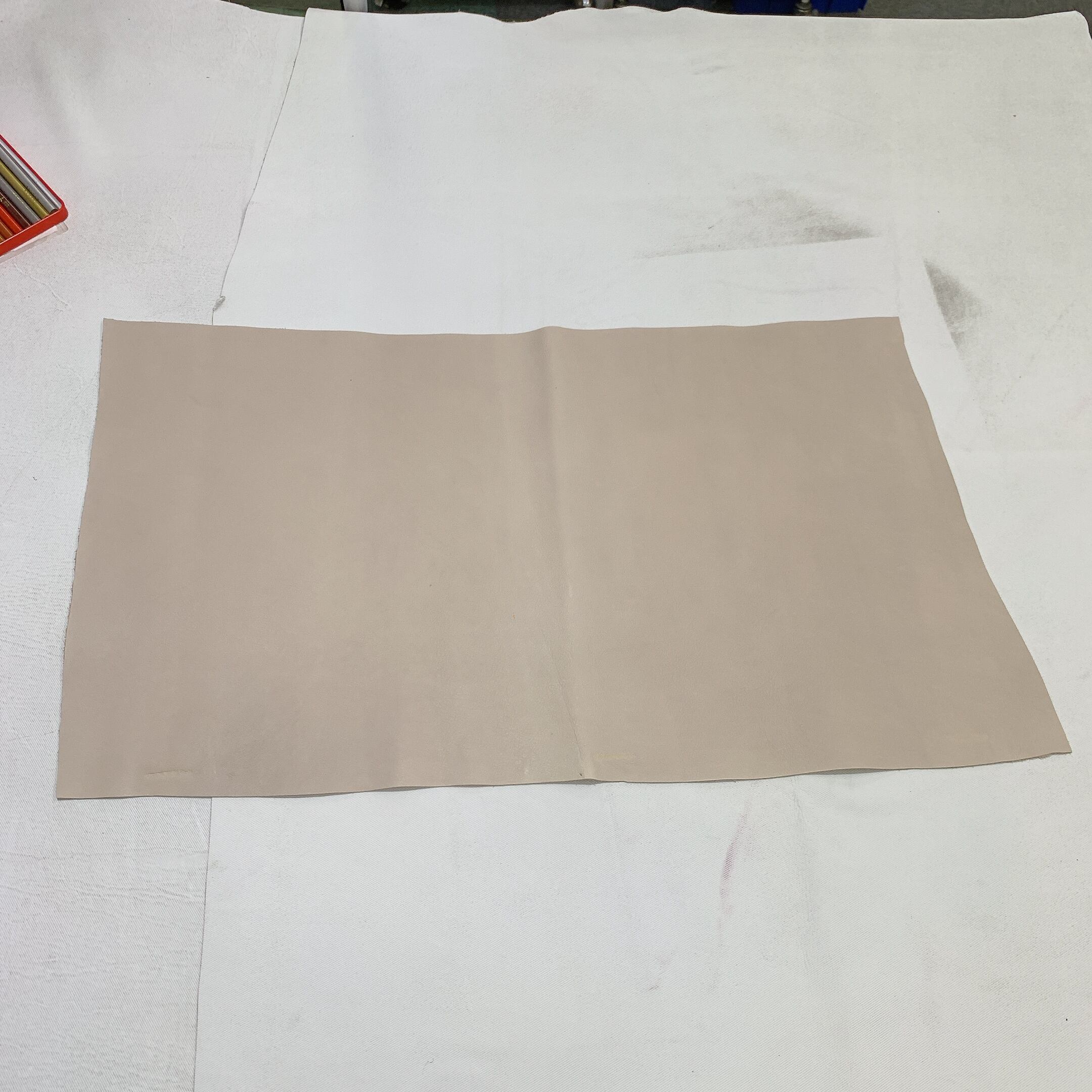当店の商品は全て天然皮革になりますため、動物特有のシワ、血スジ、虫食い痕、動物同士のケンカ時についたケガ痕(バラ傷)等がある場合がございます。また染色による個体差がある関係で同じ色でも色ムラや色味が異なる場合があります。これらは全て天然皮革ならではの特徴になりますので、その点をご了承いただき作品作りに活かしていただければと思います。