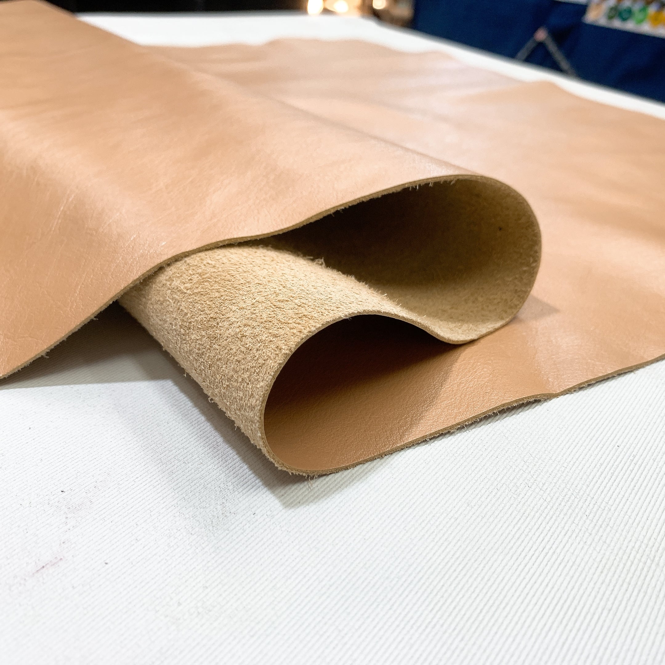 当店の商品は全て天然皮革になりますため、動物特有のシワ、血スジ、虫食い痕、動物同士のケンカ時についたケガ痕(バラ傷)等がある場合がございます。また染色による個体差がある関係で同じ色でも色ムラや色味が異なる場合があります。これらは全て天然皮革ならではの特徴になりますので、その点をご了承いただき作品作りに活かしていただければと思います。