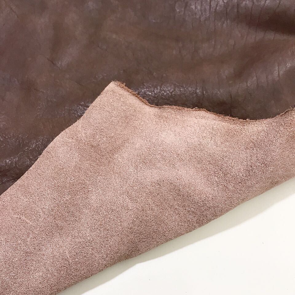 不揃いなシボと大きな曲げシワがワイルドな印象を与える1枚です。