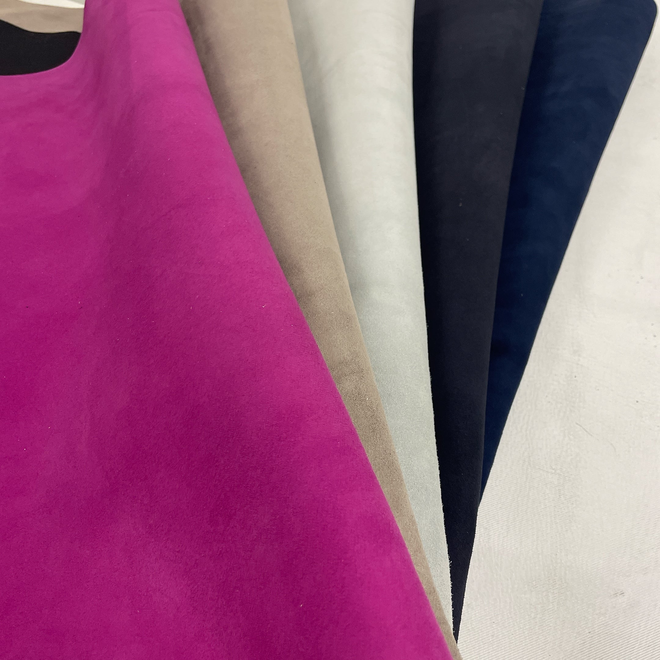 裏に生地の付いた山羊または羊のスエード革。
