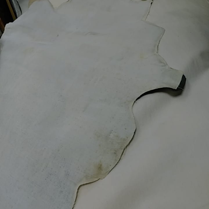 当店の商品は全て天然皮革になりますため、動物特有のシワ、血スジ、虫食い痕、動物同士のケンカ時についたケガ痕(バラ傷)等がある場合がございます。また染色による個体差がある関係で同じ色でも色ムラや色味が異なる場合があります。これらは全て天然皮革ならではの特徴になりますので、その点をご了承いただき作品作りに活かしていただければと思います。